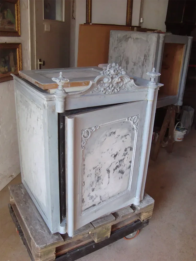 Am Anfang einer Restaurierung stehen immer die umfangreichen Untersuchungen des betreffenden Objektes sowie ein persönliches Gespräch mit dem Auftragsgeber. Auf dieser Grundlage erstelle ich ein individuelles Konzept zur Restaurierung, um die vorhandene Orginalsubstanz, die Bewahrung altersbedinkter Gebrauchsspuren und charakteristische Alterserscheinungen wie zum Beispiel der Patina zu erhalten.